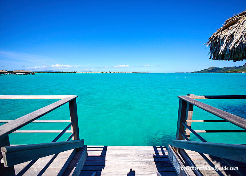 Over water bungalow view from the bathWe noticed how artfully the Four Seasons Bora Bora overwater bungalows are laid out. They're set further apart than at other resorts, giving guests more privacy and seclusion. We could relax in the bath without the world passing by, jump off our pontoon without neighbors watching, and hang out around our bungalow without hearing people talking on their phones. We were in a paradise-on-stilts above the water.
