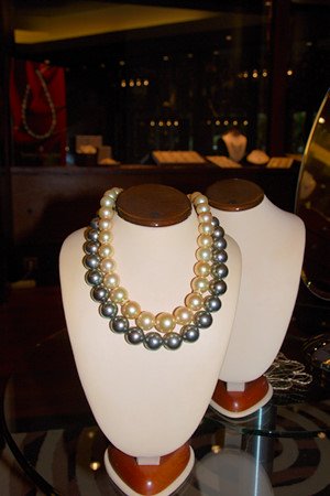 Tahia uses rarer colors in her sophisticated designs. Not just the common silver and grey pearls that you usually see in other shops. Her black pearls are larger, with brilliant nacre reflecting gorgeous shades of purple, green, blue, pink and gold. Tahia stores exhibit a wide selection of elegant necklaces, earrings and pendants. At competitive prices. The price of pearl necklaces starts at around $5,000, which is very good value for such high quality and beauty. |